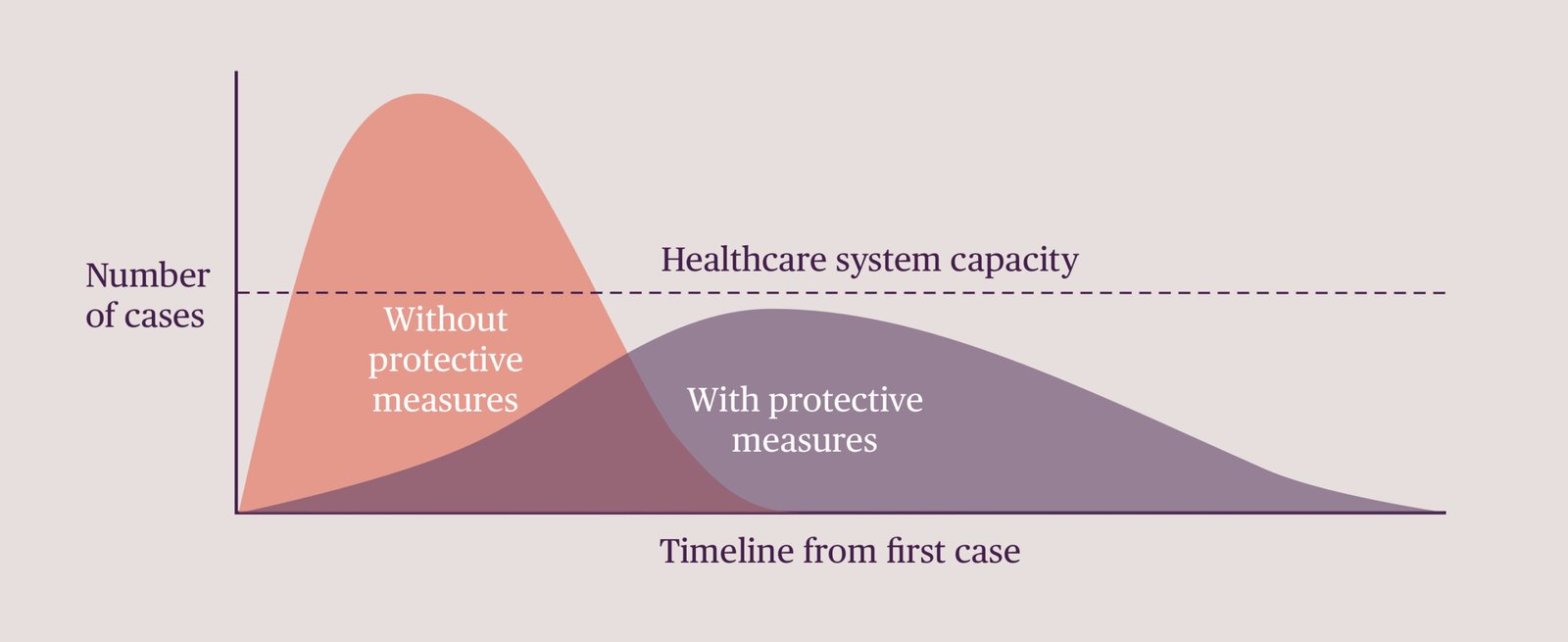 The curve represents how fast the number of people with COVID-19 is likely to increase, versus the capacity hospitals have to treat them. Naturally, the faster that people catch the virus, the more people will need medical attention. For some, this means staying in the hospital for a number of days. The spike in sick people means hospitals will be inundated with new admissions, which makes it difficult for everyone to get adequate care.