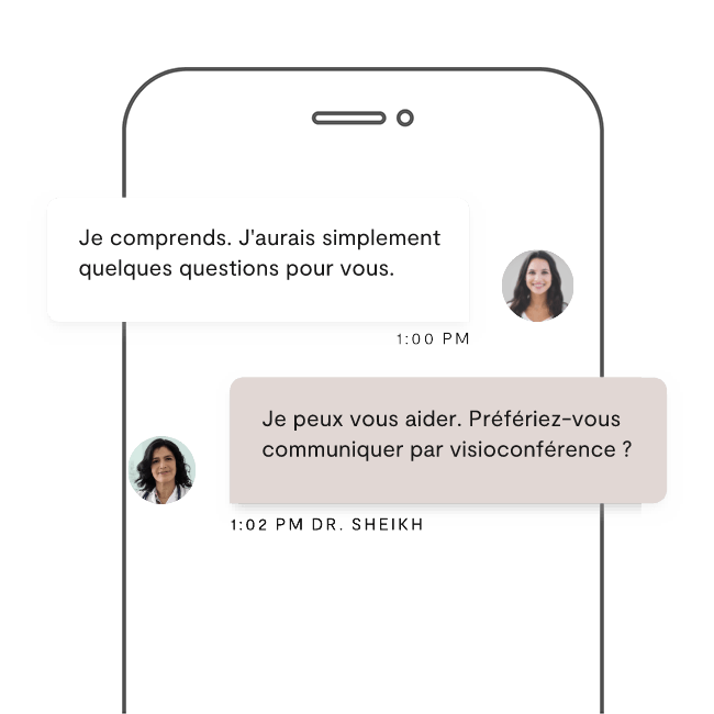 Les consultations ont généralement lieu par messages textes, mais le médecin peut vous demander de passer à une visioconférence ou à un appel audio, s’il le juge nécessaire.