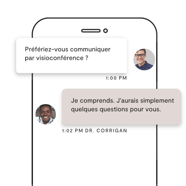 Les consultations ont généralement lieu par messages textes, mais le médecin peut vous demander de passer à une visioconférence ou à un appel audio, s’il le juge nécessaire.