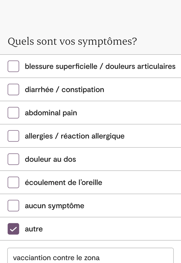 D’abord, décrivez vos symptômes