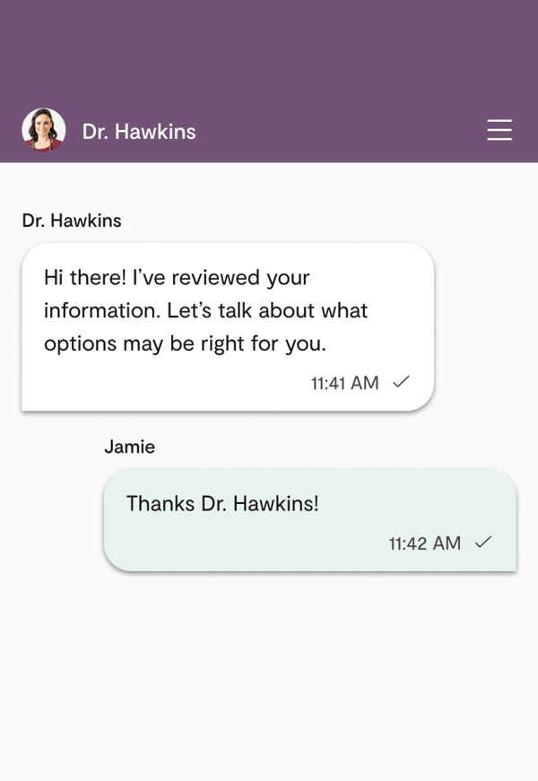 If you have questions about your progress, medication or more, our network of providers is here for you within minutes, 24/7.