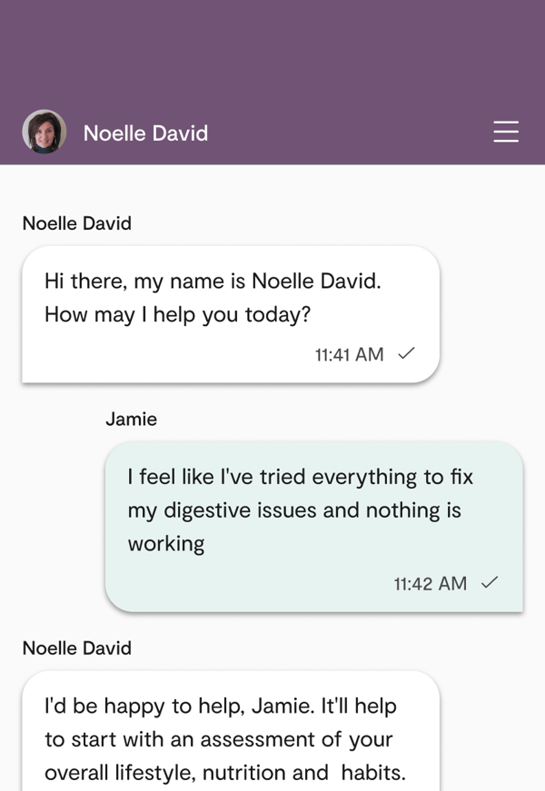 I had a great experience with my consultation on Maple. I was able to take the appointment from my office at a time that fit into my busy schedule. Noelle brings a breadth of knowledge along with a gentle and warm demeanor to her work, and I left my appointment feeling more informed and excited about my health and how I can influence its outcome.
