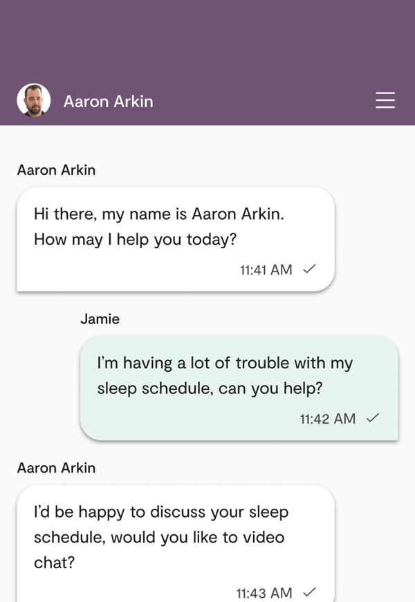 You can choose to speak with the sleep therapist through live chat or video — it's all up to you based on what feels most comfortable.